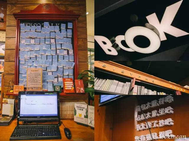 西西弗的店面设计,在细节中透露出惊喜,天花顶部的灯箱是英文单词“book”。