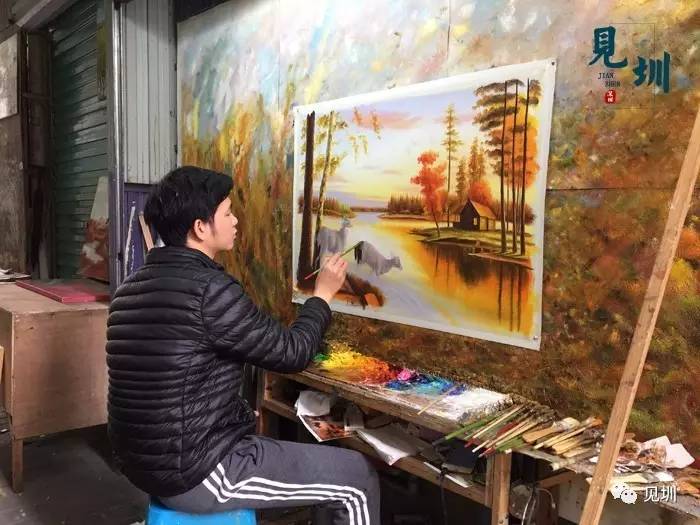 大芬村原本只是龙岗的一个客家小村落,改革开放前,村民靠种田为生。1989年,香港画商黄江因房租高涨而带着20多位画师从黄贝岭移师大芬村,这次偶然的机会,使得大芬村从此走上了油画加工、收购、出口的生意。