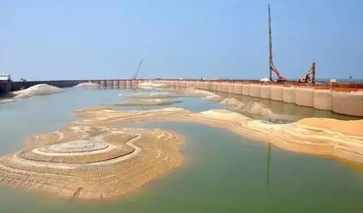 在岛内打桩并填充砂土