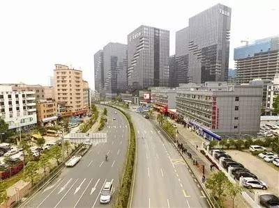 位于坂田街道二办门前的坂雪岗环城路坂雪岗大道至五和大道北段,只见这条新通车的道路上已车流如织。
