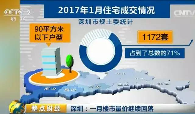 深圳方面,据深圳市规土委统计的数据显示,深圳市2017年1月一手住宅成交量、成交价格均继续回落。1月份成交一手住宅1652套,环比下降23.6%,成交均价54931元/平方米,环比下降0.03%。其中,90平方米以下的商品房成交量最大,为1172套,占总数的71%。而二手房成交量为3468套。