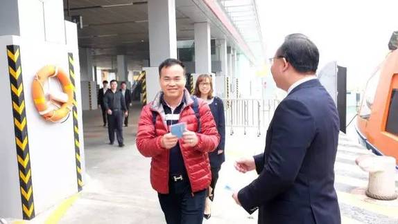 航运集团副总裁李拥军先生为首航乘客派发小礼品