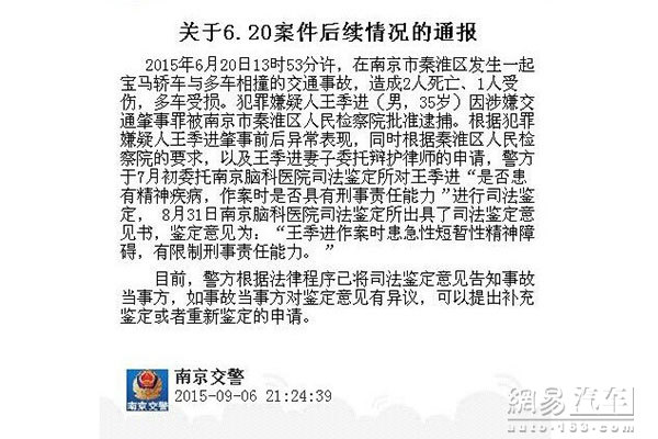 此案件在警方最初发布的通告后显得疑点重重,但是两个多月以后发布的后续通告则更是领此案让人疑惑不解,警方在经过调查后称,有证据表明因为肇事人王季进在肇事前后有明显的行为异常的表现,经鉴定王季进作案时患急性短暂性精神障碍,有限制刑事责任能力。一时间引起了社会一片哗然。媒体与网民的质疑声更是四起。