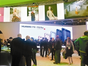 近日,在巴塞罗那世界移动通信大会上,华为展示手机产品。深圳商报记者 陈姝 摄