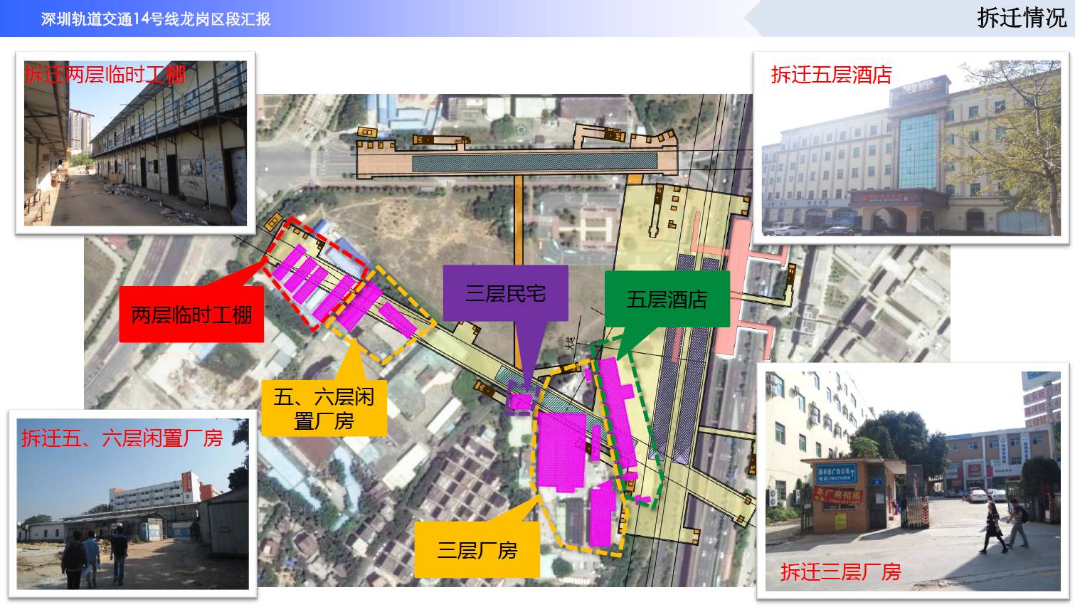 大运站拆迁情况:大运站拆迁面积约为35053平米(主要包括一栋6层酒店,两栋3层厂房,一栋5层闲置厂房,一栋6层闲置厂房,四栋临时工棚,一栋3层民宅)