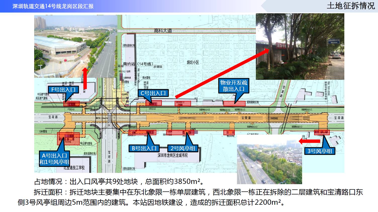 占地情况:出入口风亭共9处地块,总面积约3850平米。