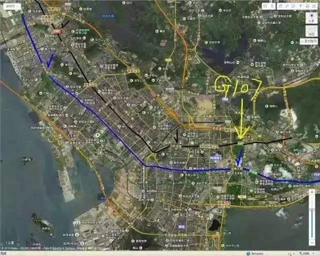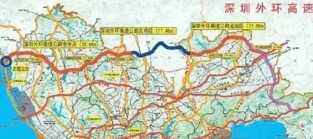 深圳连接东莞的外环高速将建成,沿线与广深沿江、南光、龙大、梅观、清平、博深、深惠、深汕东部沿海等衔接,全长93.2公里。其中深圳段为75.8公里,东莞段为17.4公里。107国道