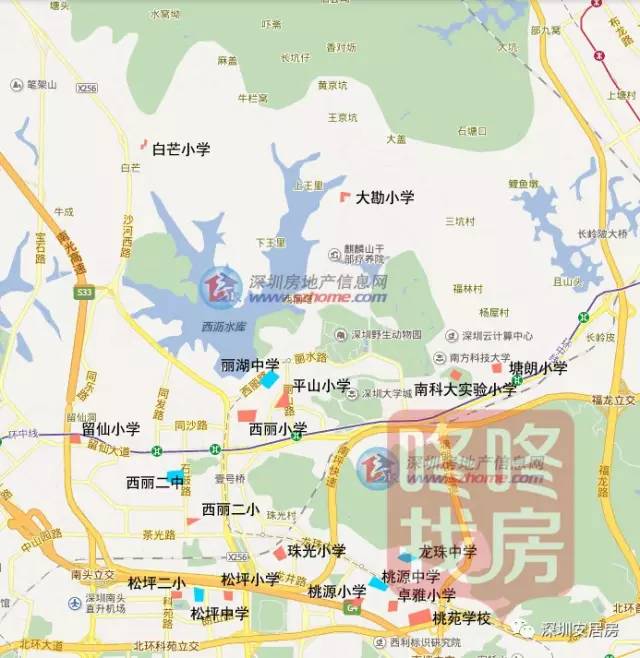 最近中小学求学方案有两个,往北“西丽二小和西丽二中”,往南“松坪一小和松坪中学”