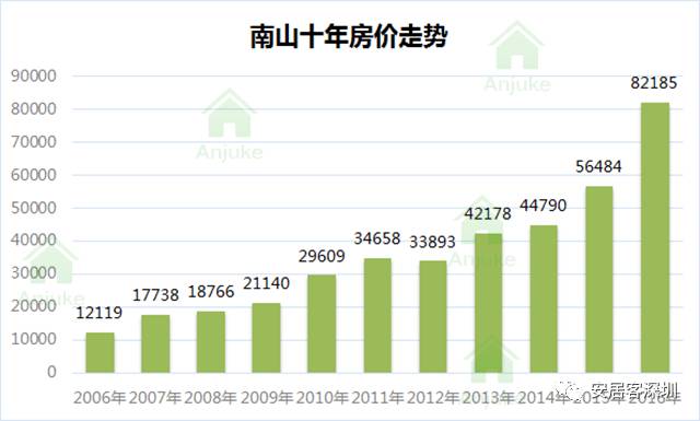 深圳十年房价,从2006年不到1万元/平,到2016年的5万多/平,十年涨了490%。而2006年深圳平均工资不过2926元,2016年深圳平均工资8525元,十年工资涨了190%。尤其是2015到2016年,涨了近3万/平,其实除了根本上房价一直在疯狂上涨之外,和福田豪宅化的市场有关,要知道2016年深圳基本上都是10万+楼盘在售。