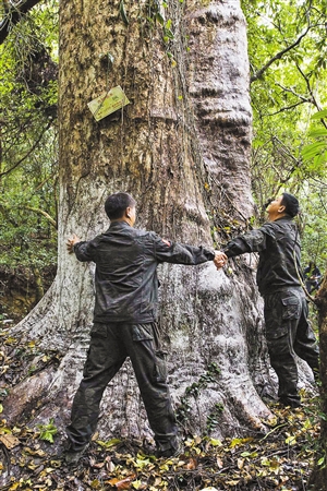 半天云村生长了500多年的秋枫,竟然连土生土长的本地人都不知道,最后在巡防队员的指引下记者才找到了这棵古树。深圳商报记者李博 摄