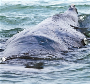抹香鲸近照,背部的伤痕清晰可辨。