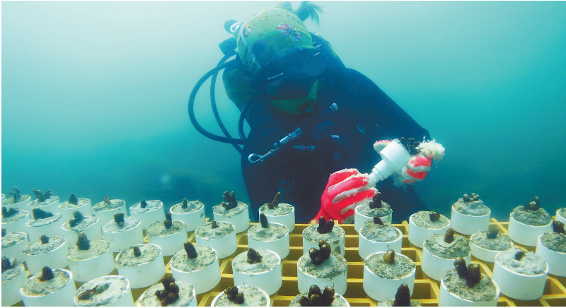 深圳新闻网讯 有水里撒网的人,就有海底“种树”的人。