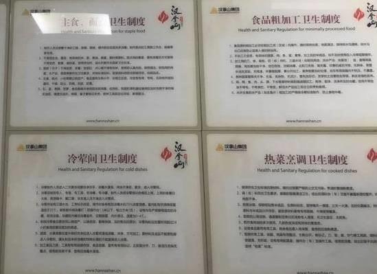 1.后厨墙面上张贴有餐厅管理制度和警示