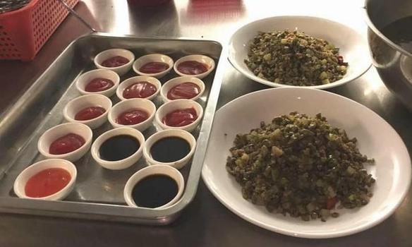1.预备上桌的佐料未加盖薄膜防虫防蝇