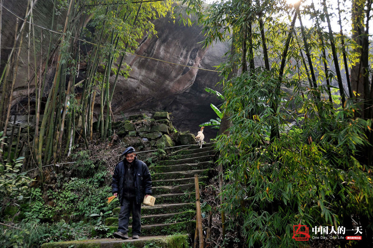 今年82岁的老人梁自付,是四川省南充市嘉陵区临江乡人。1962年2月,他和妻子把家安在了一个山洞里,过着较为原始的男耕女织生活,这一住,就是55年。