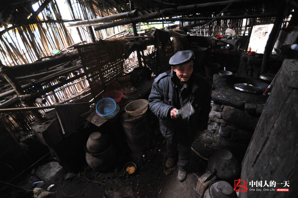 在这里生活的55年时间里,梁自付对房屋进行过三次大的改建,才最终形成现在的房屋格局,包括猪圈、厨房、堂屋和3间卧室。图为梁自付的厨房。