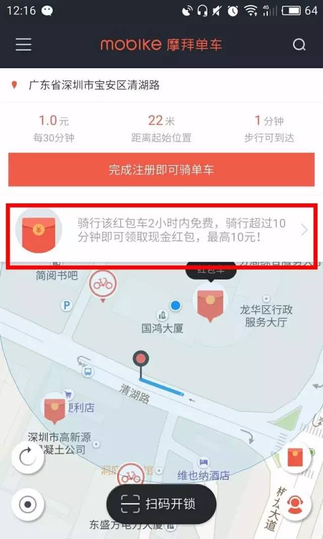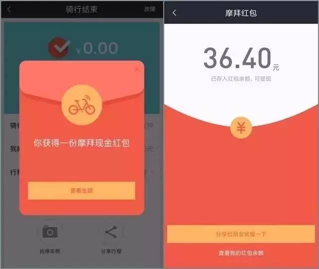 1、有效骑行超过10分钟,可以获得随机现金红包
