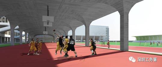教学区架空空间长达150米的风雨连廊,提供四个篮球场,以及其他非正式的校园活动场地,营造优质的综合教学“生态系统”。