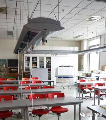 实验室参考国外教学模式,将各类管线设备设置在头上吊顶,这样可以让实验桌自由、灵活摆放,为未来灵活多变的教学模式创造有利条件。
