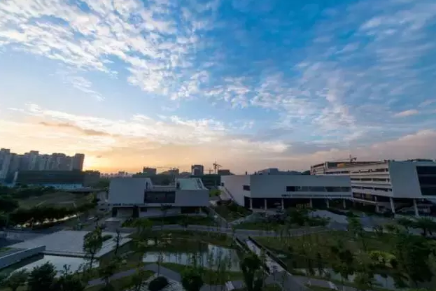 从一号门进入校园,首先映入眼帘的是校名石与大名鼎鼎的教学科研服务中心——南科大第一高楼。趁着早晨阳光正好,赶紧先与校名石合影一张吧。