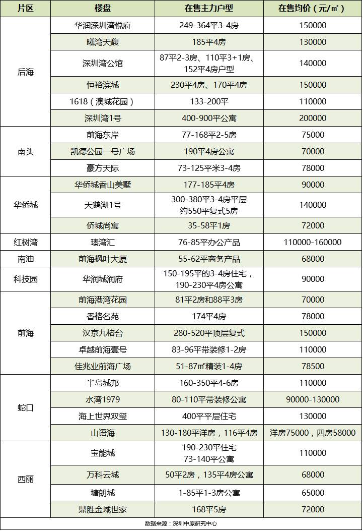 楼校长拿到了深圳最新各区在售新房价格表,一共152个楼盘,供大家比对参考。