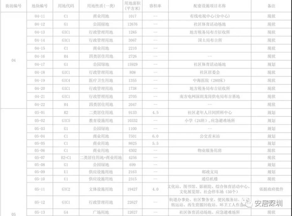 规划控制单元控制指标一览表