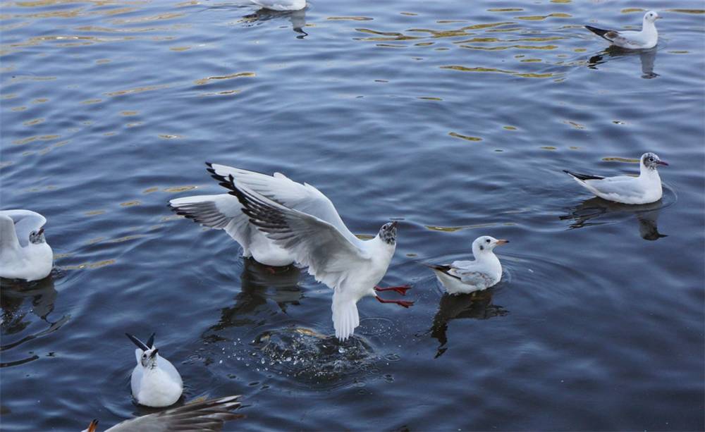 成千上万只红嘴鸥会从北方飞来在此越冬