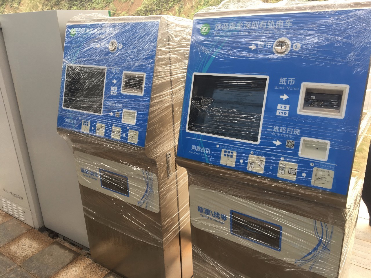 小编注意到,整个车站与列车同长,建造在道路的中间,为岛式车站,车站一旁安装了自动售票机。