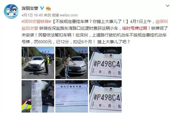 清明假期期间,深圳盐田交警铁骑在深盐路东湾路口巡逻时查获一辆小车,临时号牌过期,铁牌领了却没有安装,民警依法暂扣车辆!