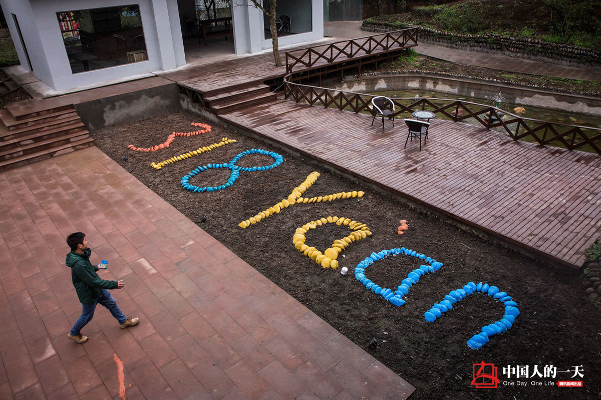24岁的欧洪明出生在重庆。大学期间他省吃俭用,骑着用零用钱买的自行车,穿越了318川藏线。大学毕业后,他当过矿工和筑路工,却因为对川藏线的执念选择离开,与另外两个骑友一起在318川藏线雅安市名山区与雨城区交界处搭建起了众骑友心中的“乌托邦”,建了俱乐部,为所有喜欢318的骑友提供住宿服务。图为俱乐部内,欧洪明与同伴用鹅卵石拼出“318雅安”的图案。(图/文王翮)