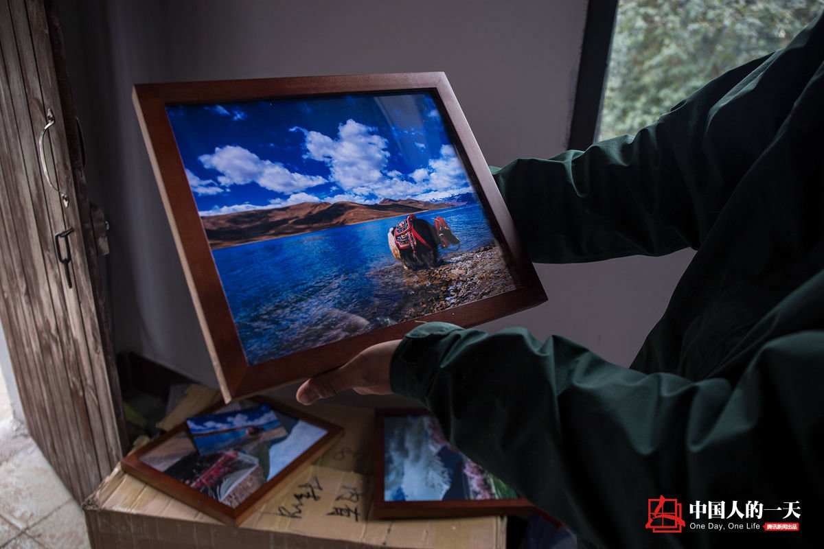 离开新疆后,欧洪明来到西藏拉萨,成为一名筑路工作者。在海拔4000米的高原,勘探筑路并不轻松,但欧洪明是快乐的,特别是当他见到从东边前来布达拉宫“朝圣”的骑行者时。感同身受,他萌生了建立一家318线“骑行者交流平台”的想法。图为欧洪明给川藏线景观图刷层清漆。