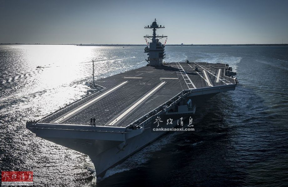 福特级全长337米,全宽41米,满载排水量10万吨,搭载有2座A1B压水堆,最大航速超过30节,最多可搭载90架固定翼战机和直升机。