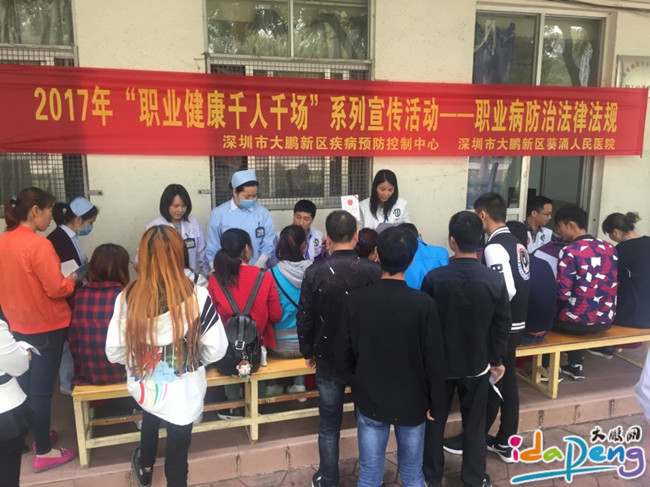 新区公共卫生管理服务中心与葵涌人民医院于4月13日联合在比亚迪厂区开展职业病防治法律法规的宣传活动。