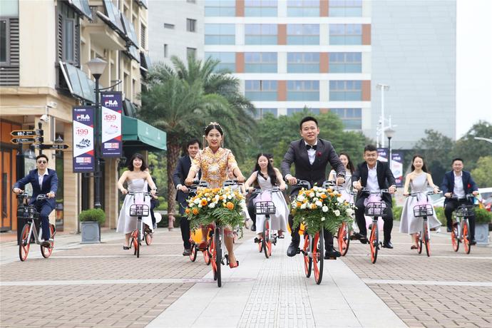 4月16日,是深圳市民高先生和湖北女孩魏小姐大喜的日子。新郎家住盐田区奥特莱斯购物村,新娘暂住的酒店在大梅沙海滩旁,两地距离约1公里,为避免可能出现的交通拥堵,这对新人选择骑共享单车完成接亲的婚礼重要步骤。