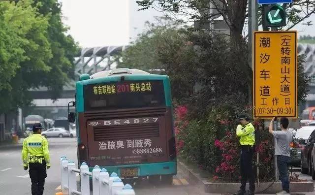 从4月14日开始,深圳交警在深南大道南新路至南山路口推出国内首条“遥控护栏+灯控”组合潮汐车道。将西往东方向左侧第二条左转车道设置为可变车道车道,潮汐车道使用时,可变车道设置为直行车道,从而增加断面直行的通行能力。