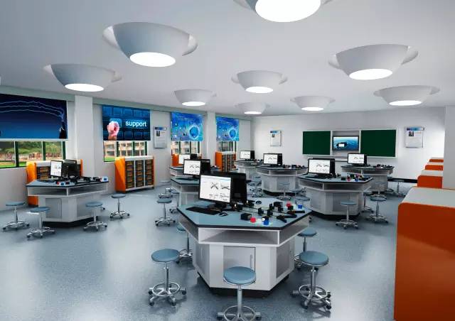 校园建筑为环廊平面设计,采光充足的东、南侧为教室,北侧为教学功能用房及宿舍,西面是音乐餐厅和体育馆。