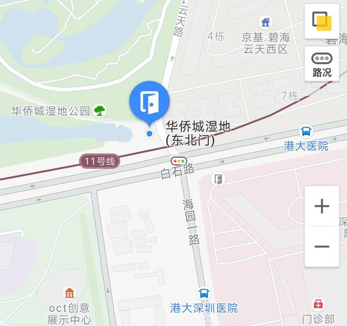 罗宝线【侨城东】站 C2 或 B 出口,向南直行至与白石路交汇处向西直行200米即可到达。