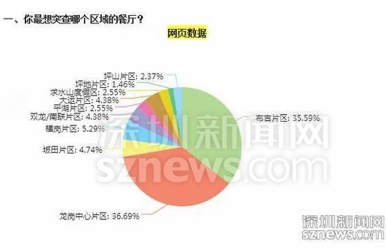 根据深圳新闻网发起的《你点哪家我们就查哪家》民意调查,最多市民提议检查的片区是龙岗中心城片区,其中网页端有1712票(36.68%),微信端有305票(24%)。排名第二的片区是布吉片区,龙岗中心城片区及布吉片区票选总和已占70%。