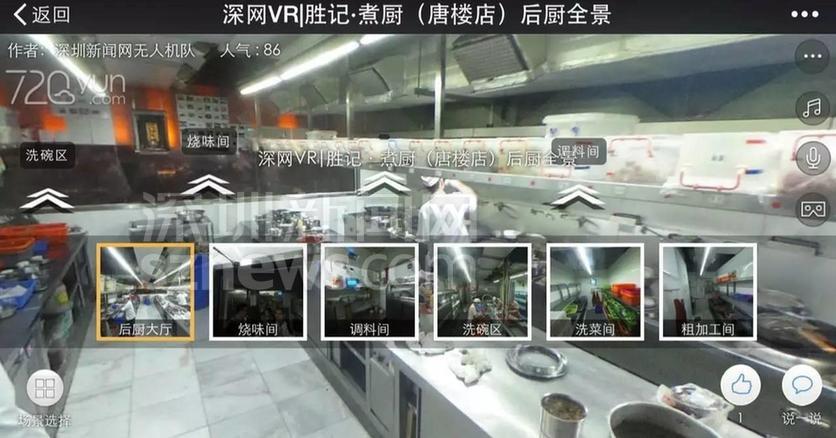 扫描二维码观看胜记·煮厨(唐楼店)后厨720°全景