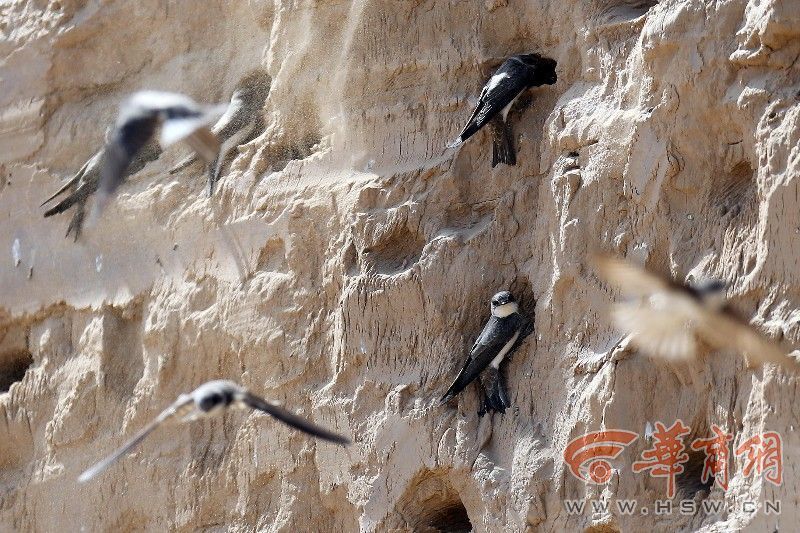 据动物保护专家介绍,这种小燕子名为崖沙燕,和家燕在屋檐下筑巢不同,崖沙燕是在沙土崖壁上筑巢。“这种燕子每个洞穴就是一个家庭,也就说每一洞穴最少有两只燕子。从这么多洞穴来看应该有上千只崖沙燕。”西安市野生动物保护站的工作人员说。