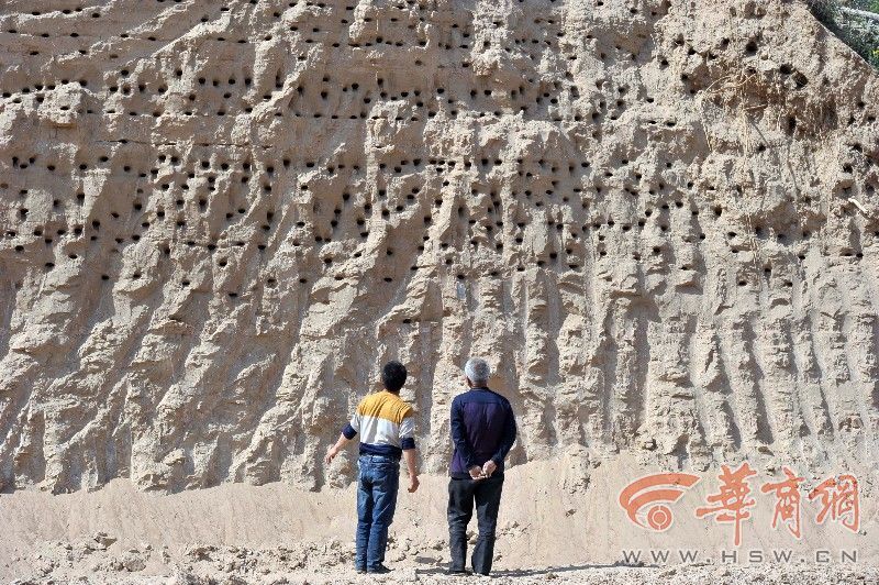 4月25日报道,在西安渭河北岸马家湾米家崖附近的一处工地里,来了一群燕子,它们在工地施工中产生的一处沙土崖壁上筑起了巢。放眼望去,20米长、10米高的崖壁上密密麻麻被燕子凿出了拳头大小的洞穴,筑成了它们的巢穴。来源:华商网赵彬 摄