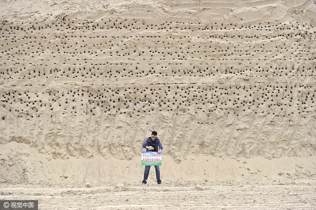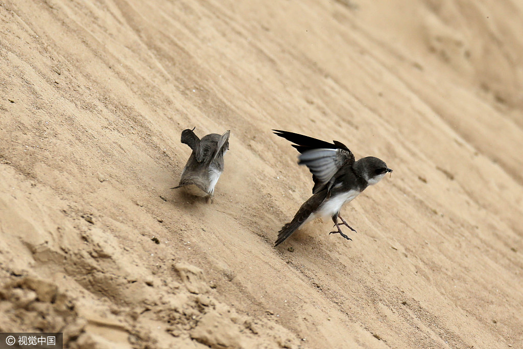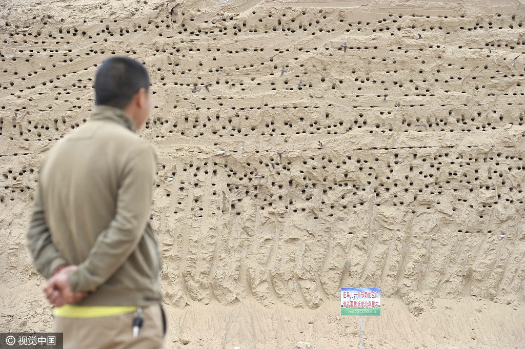 2017年4月27日消息,西安。近日,西安渭河北岸一工地筑巢的上千只崖沙燕的命运,经华商报连续报道后,引发多方关注。昨日,工地项目方陕西省天然气股份有限公司表示将调整施工方案、施工周期,保护这些崖沙燕,让它们安全地在此筑巢、育雏、成长、飞翔。供图:视觉中国/华商报赵彬
