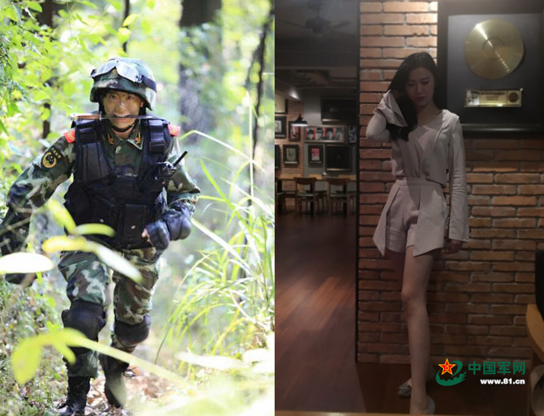 “90后”广东姑娘曾佩妍当兵时和退伍后(拼版图片)。