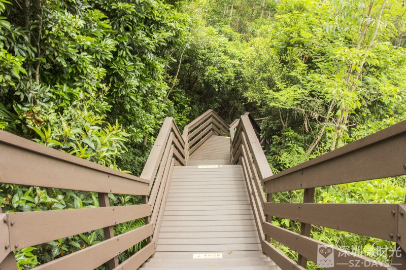 最不能错过的观水点和拍照打卡点,就是山顶的林荫栈道了。整个栈道简直就像是从茂密的高大树林里生生杀出来的一条小路,绿色植物直逼你的视野,给你触手可及的亲近。