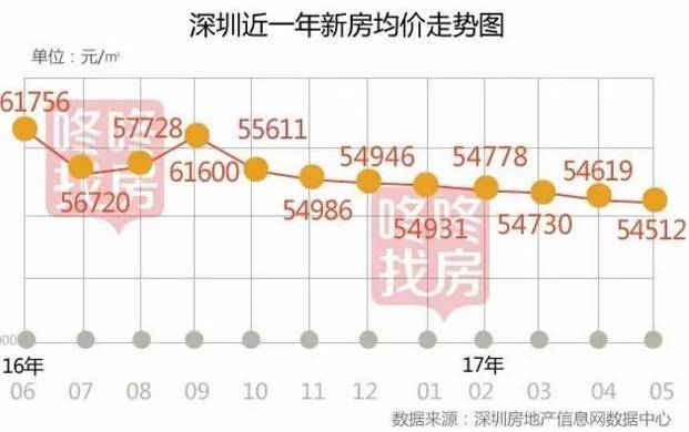 根据市规土委数据,5月一手住宅成交价格54512元/平方米,环比再度下跌0.2%。5月是连续7个月处于5.5万元/平方米的水平,截至目前深圳房价已经连续8个月下跌,与2016年9月的61600元/平方米相比,房价已下跌7088元/平方米。(深圳商报 记者 陆剑伟)