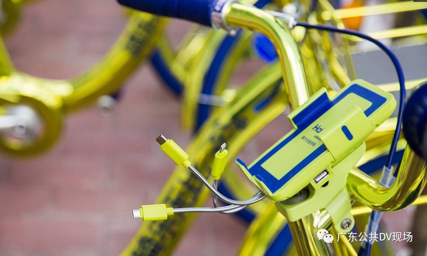 网传深圳出现“土豪金”共享单车,除了有单车的功能外还可以给手机充电。