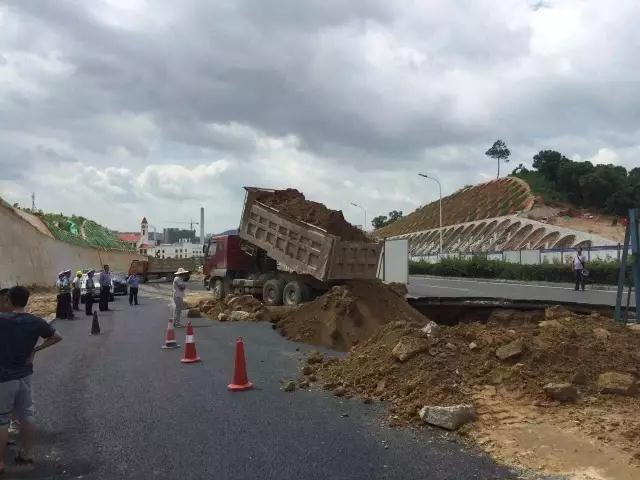 陈先生告诉记者,他们正在填坑,之后会对道路进行硬化,如果时间和材料允许,就进行钢板铺设,如果来不及就用其他材料先填补,让道路下午可以尽快通车。