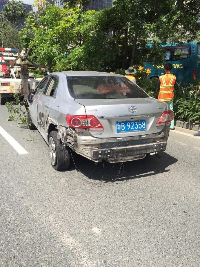 深圳小车冲进绿化带 交警通报事故现场 感叹触目惊心