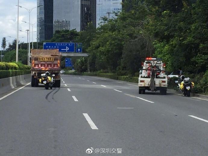 28日上午,深圳交警通报一起交通事故,并附文感叹:看看事故现场,有没有一种触目惊心的感觉?图为事故现场。
