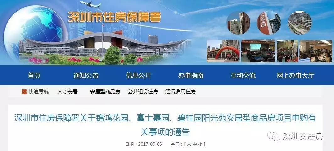 深圳市住房保障署刚刚发布了关于锦鸿花园(454套)、富士嘉园(251套)、碧桂园阳光苑(240套)安居型商品房项目申购有关事项的通告!